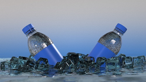 Thanks for sharing the images! Btw, I like the look of the icecubes you did. However there is probably needed to improve the water droplets on the bottles, they are too spherical