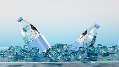 Another thing is that you have the ice cubes and water droplets on the bottle. These objects overlap with other refractive surfaces: with the water around and with the bottle plastic object. I would recommend to set and test "Is Liquid" for water in the bottle and the water around.